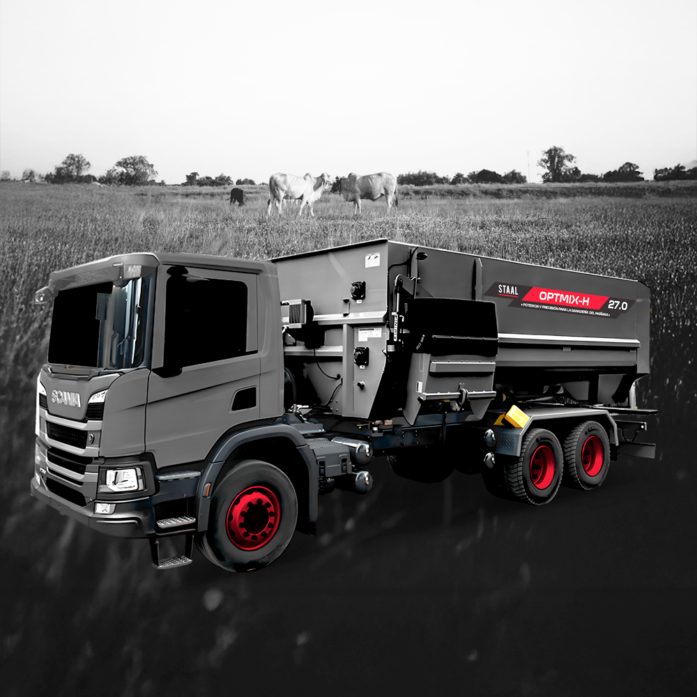 Los mixers horizontales OPTIMIX-H de STAAL® son la elección ideal para el productor que busca un equilibrio entre rendimiento operativo, autonomía y una relación costo-beneficio excepcional en campos de grandes extensiones. Diseñados con 2 sinfines horizontales, para garantizar mezclas homogéneas que mejoren la absorción de nutrientes en el sistema digestivo de los rumiantes, estos equipos ofrecen soluciones eficientes para la preparación y distribución de raciones. Capacidades de 6 a 27 m³